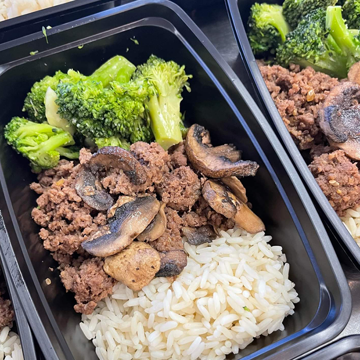 Seasoned beef, roasted broccoli and rice (a customer favorite)!